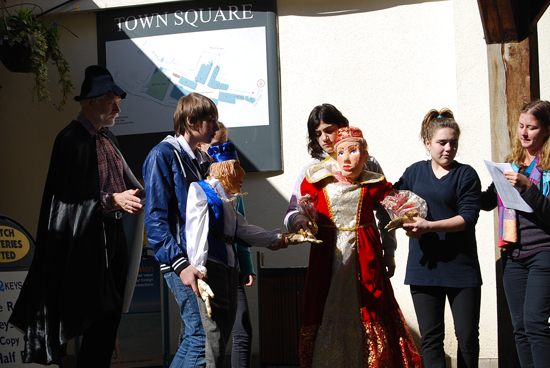 The first week was devoted to Shakespeare and his time. It was our fourth visit to the festival, which is annually held on Shakeaspeare’s birthday and hosts international theatre groups. Performers play right in the streets. This year we came with “Twelfth Night”. On the morning of the festival together with dolls we took part in the colourful dramatized procession, from the central square to the church where the great poet was buried. And then we gave two performances on the festival venue.
