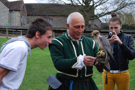 they watched a falconer teaching a falcon to hunt and with the permission of the falconer Janush they took a few photos with his pets – a falcon and an owl.