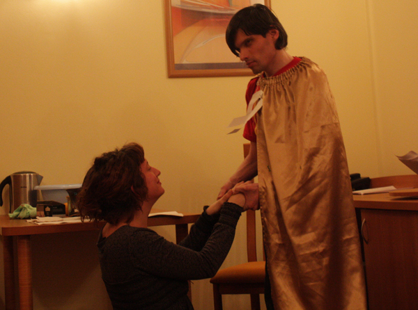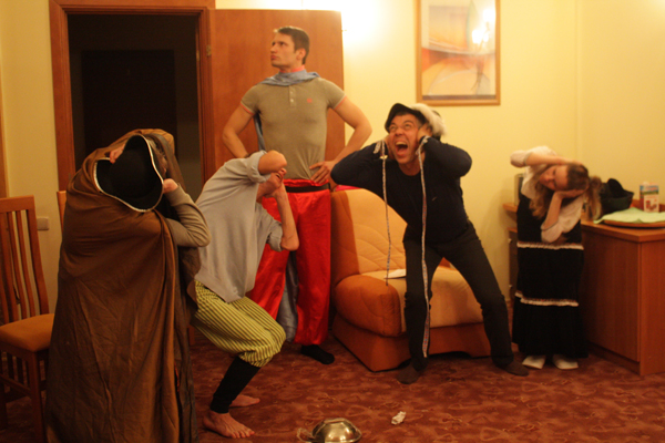Using the “Theatre from wheels” method, our stage director Alexander Kolmanovsky put on scenes from Shakespeare’s Twelfth Night.