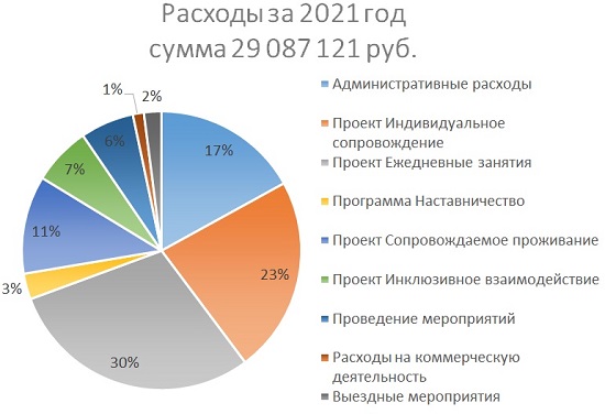 За 2021 год в рамках программы проведено 1082 развивающих занятия кураторами, специалистами и волонтерами (проведены занятия по развитию бытовых навыков, по расширению кругозора, занятия по усвоению образовательных программ различного уровня (школа, колледж, университет), в том числе консультации по подготовке к итоговым экзаменам (в том числе ОГЭ, ЕГЭ, государственные экзамены в колледжах и университетах), психологические консультации и консультации нейропсихолога, развивающие занятия с дефектологом, логопедические занятия по развитию устной и письменной речи, занятия по развитию арифметических и коммуникативных навыков, занятия по профориентации и финансовой грамотности. Реализовано индивидуальное социальное сопровождение 38 благополучателей и 28 членов их семей, которое включало бытовое сопровождение - развитие бытовых навыков, налаживание бытовых условий в жилье благополучателей; медицинское - забота о состоянии здоровья, в том числе борьба с вредными привычками, сопровождение в медицинские организации; педагогическое - работа с выпускницами-мамами над созданием условий для нормативного воспитательного воздействия на ребенка, сопровождение в усвоении образовательных программ; психологическое - работа над психологическим состоянием благополучателей, выведение из кризисных ситуаций, в том числе психологическая адаптация к социальным условиям; трудовое - помощь в трудоустройстве, профориентация; правовое сопровождение - юридические консультации и помощь благополучателям в решении юридических вопросов (оформление различных документов, пособий и т.п.))
