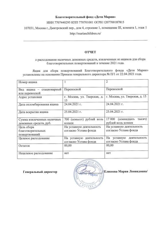 Отчёты за наличные из ящиков сбора пожертвований