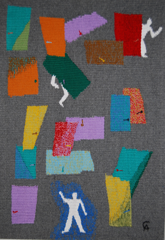 Оля и Вера Фалецкие, Сережа Бунин. Превращения. Гобелен, керамические пуговицы