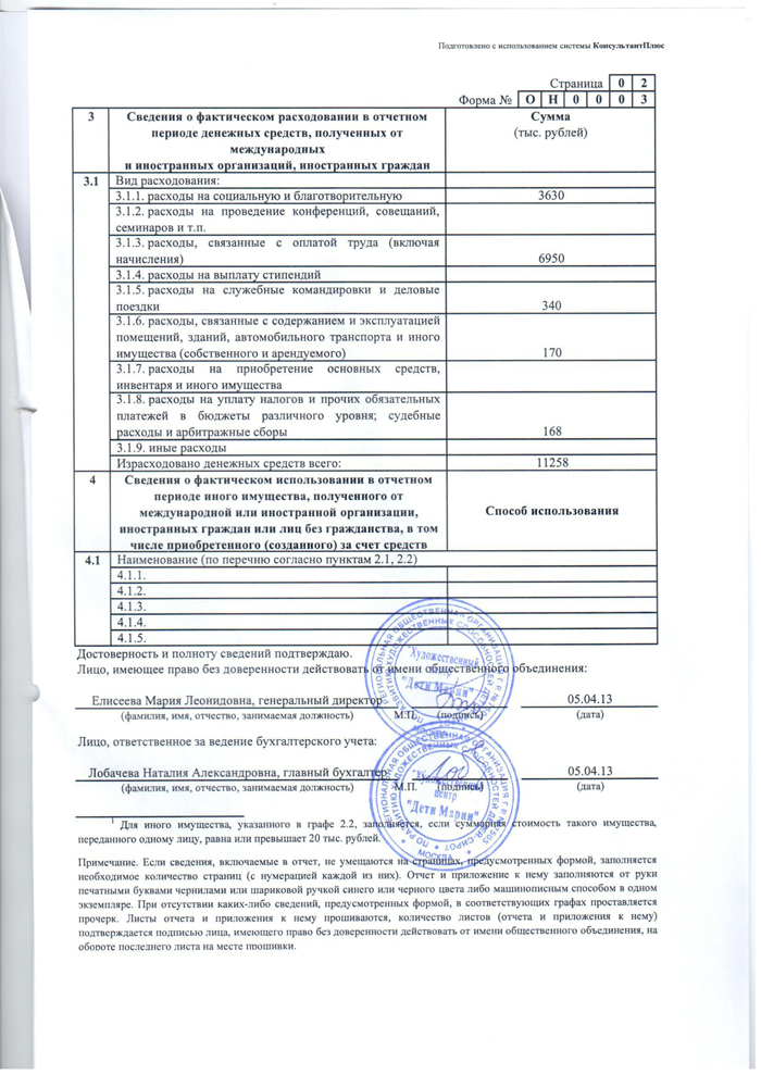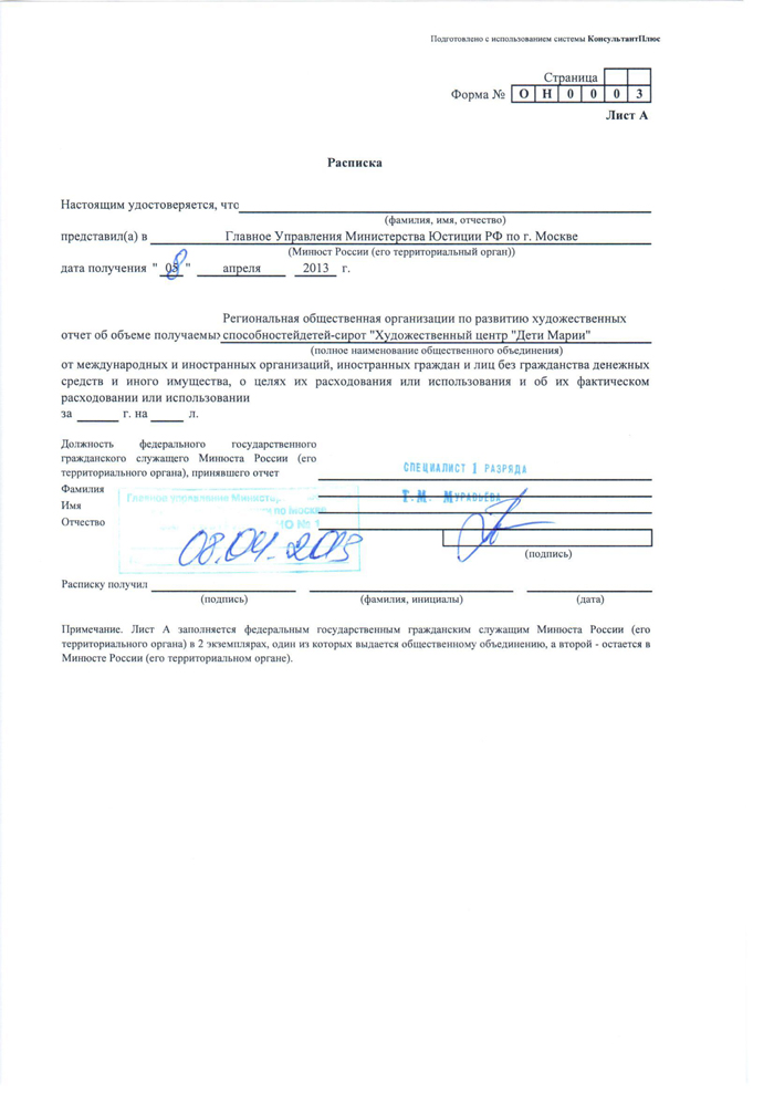 Отчёт в Минюст 2013