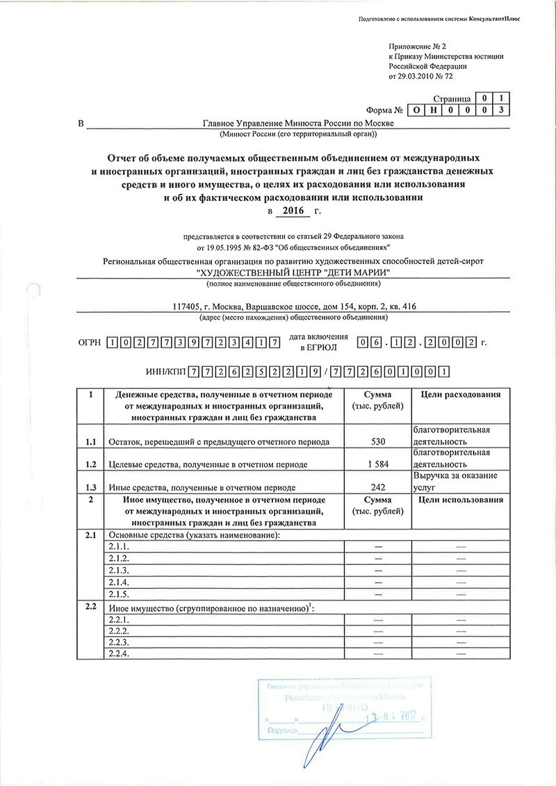 Отчёт в Минюст 2016