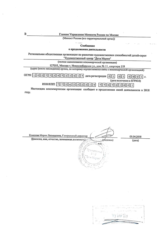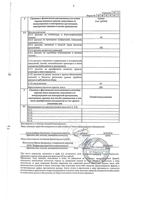 Отчёт в Минюст 2018