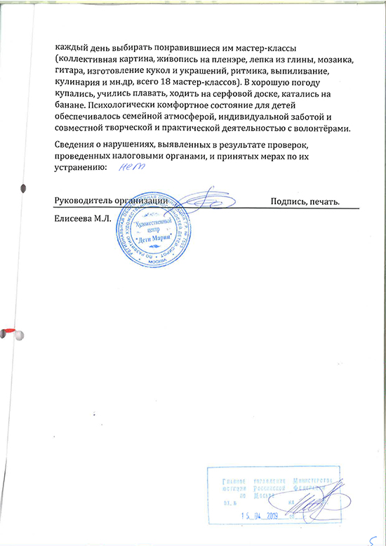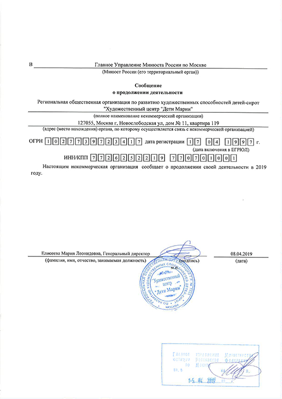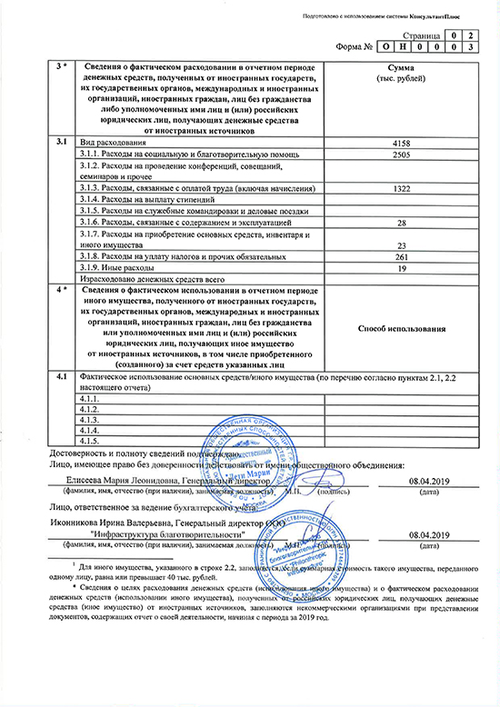 Отчёт в Минюст 2019