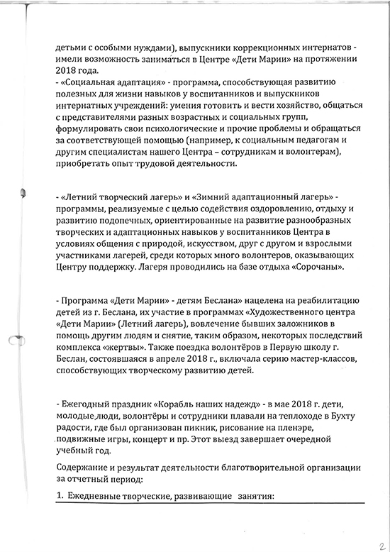 Отчёт в Минюст 2018