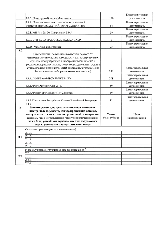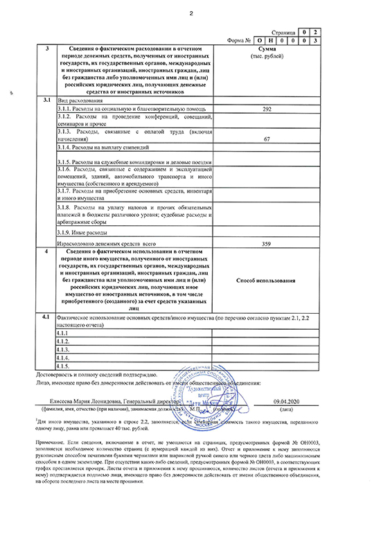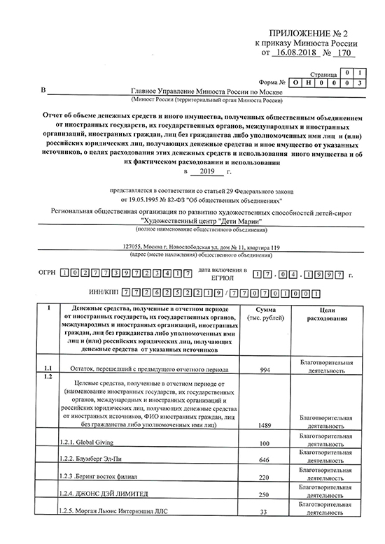 Отчёт в Минюст 2019