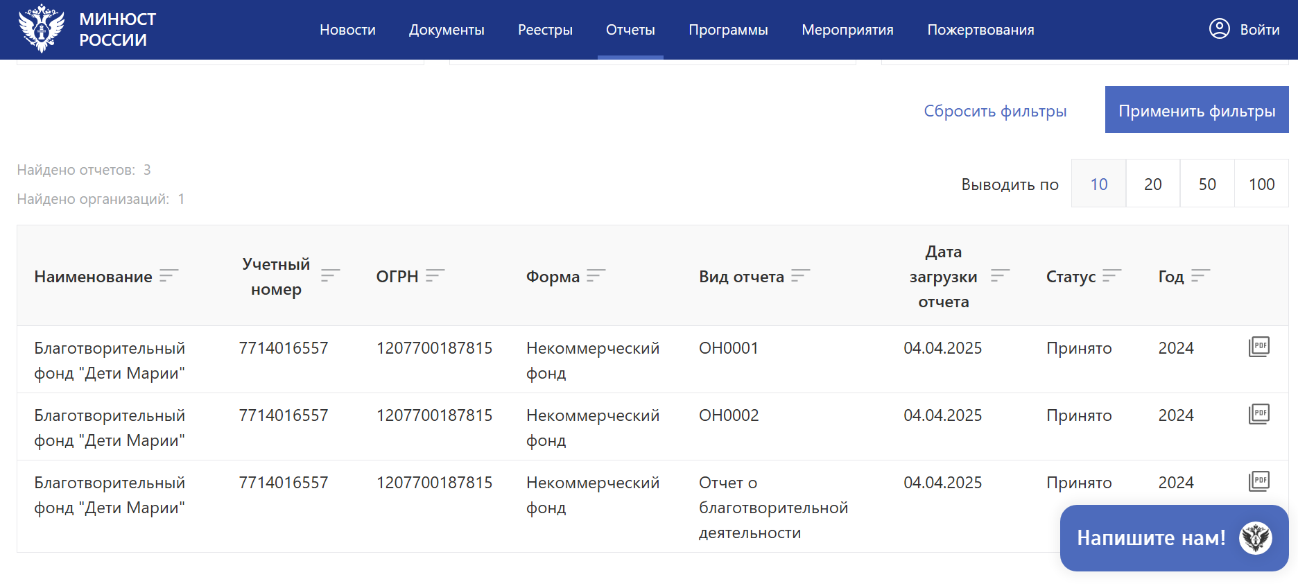 Отчёт в Минюст 2024