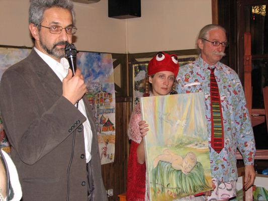 Приходите, мы ждем вас до 19 ноября. И конечно, на открытии были наши дорогие клоуны - доктор Пэтч Адамс и его команда.Кормили и поили нас компании Росинтер и Кока-Кола, за что им огромное спасибо. Аренда зала частично оплачена на средства из гранта от компании Прайсвотерхаус Куперс.
