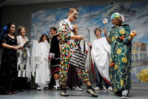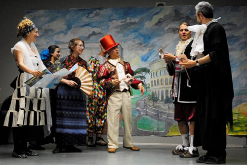 Старшие ребята и взрослые, упорно несколько месяцев изучавшиеитальянский язык, показали нам спектакль на ИТАЛЬЯНСКОМ! Героями спектакля стали традиционные персонажи итальянской комедии масок – Арлекин, Коломбина, Доктор, Панталоне и т.п., а сценарий мы написали сами.