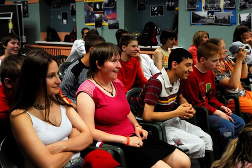 Главными зрителями были ребята из седьмого интерната.Конечно, пьесу на незнакомом языке смотреть непросто, поэтому текст на русский язык нам переводила… итальянка Микела!