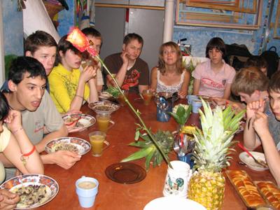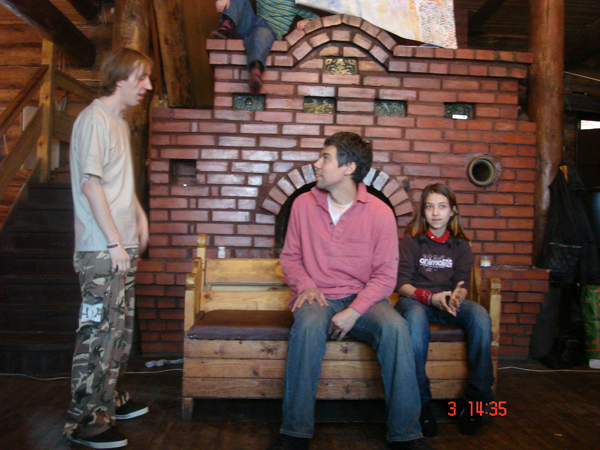 Леша Строев, выпускник интерната: - Самое яркое впечатление – баня. Первый день мы без детей сидели, парились. А потом туда, в холодную воду залезали. И еще игра большая, когда я был Емелей. Я просидел час, прождал на этой печке, у меня ноги отмерзли! И ребенок прибежал с криком «Емеля!» и плюх в дрова, которые я приготовил, чтобы дети разжигали костер. И все мне сломал!
