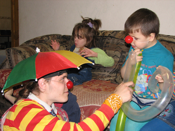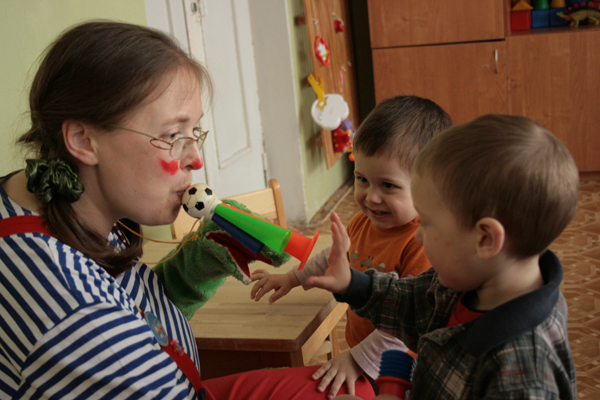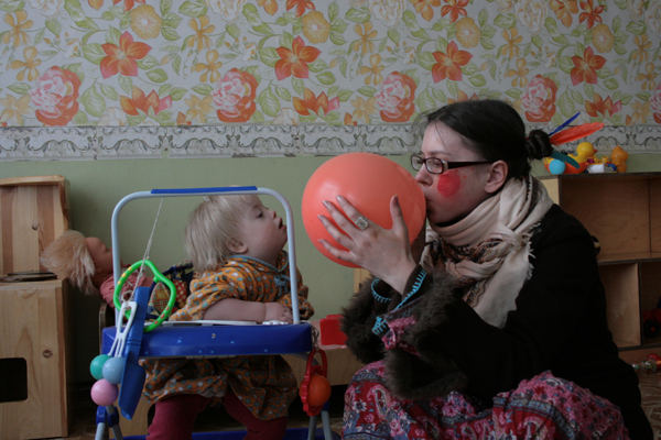 Я давно не была во Фрязино, наверное, год. И я помню совсем других детей, то ли они выросли, то ли их перевели, совсем новые дети. И я подружилась с мальчиком Васькой. Говорить он не умеет. Он все время пытался съесть то мой красный клоунский носик, то совочек – у него зубки режутся. А я ему это не разрешала, совочек был грязный, Вася от меня убегал, а я догоняла, он очень веселился.