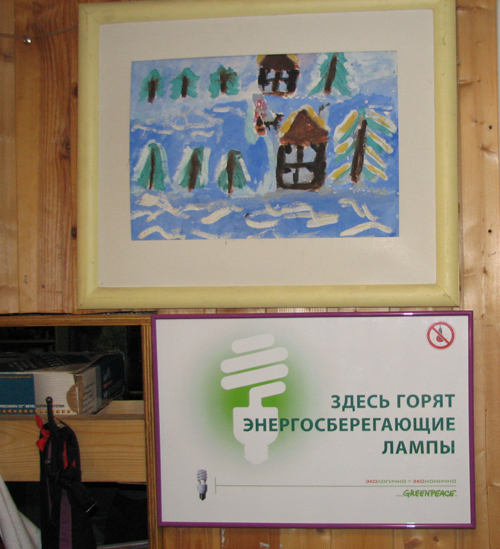 Вместе с ребятами из Гринписа и организации «Турград» мы с несколькими старшими и детьми из 4-го интерната посадили несметное количество желудей и маленьких лиственниц, а также пересадили молодые дубки на берег пруда. Ребята из Гринписа рассказали детям о повсеместном уничтожении лесов, о том, к каким бедственным последствиям это приведет. Дети очень сочувствовали всем обитателям леса, зверям и птицам, травам и деревьям, поэтому под вечер все вместе дети и взрослые нарисовали красочный баннер в защиту природы. На нашем баннере прекрасно уживаются рядом жирафы и ежи, божьи коровки и люди, и нам бы хотелось, чтобы на нашей планете всем нашлось достойное место, потому что у нас «запасной планеты нет» (так дети назвали свой баннер).