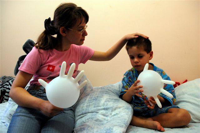 Дети, которые уже хорошо нас знают и помнят по нашим клоунским поездкам стали по привычке просить шарики, которые мы в этот раз не взяли с собой. Но выход нашелся — вместо шариков мы использовали резиновые перчатки.