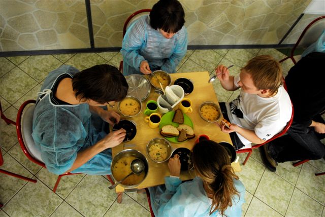 В столовой нас накормили обедом и ужином.
