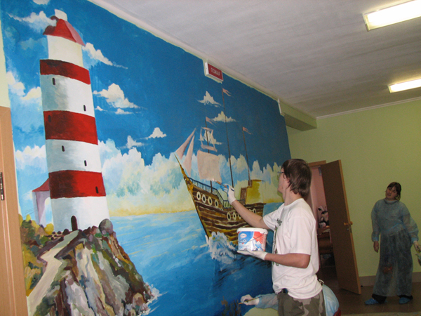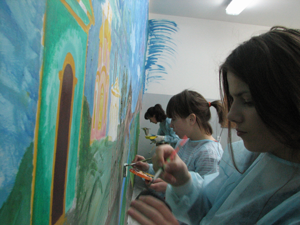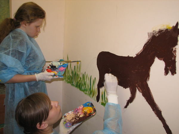 Второй этап росписи стен в интернате для слепоглухих в Сергиевом Посаде прошел вчера в рамках проекта "Зорко одно лишь сердце".