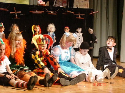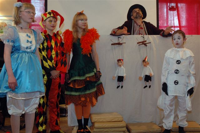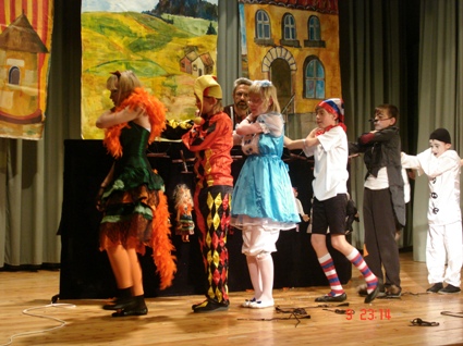 Вчера группа ребят из 4-го интерната, которая готовит спектакль о приключениях Буратино и Пиноккио на итальянском языке, побывала на представлении "Приключения Буратино" в Государственном училище циркового и эстрадного искусства. В этом спектакле играют учащиеся дети и подростки — будущие звезды российского цирка. Нам очень понравилось это представление — мы побывали сразу и в театре, и в цирке.