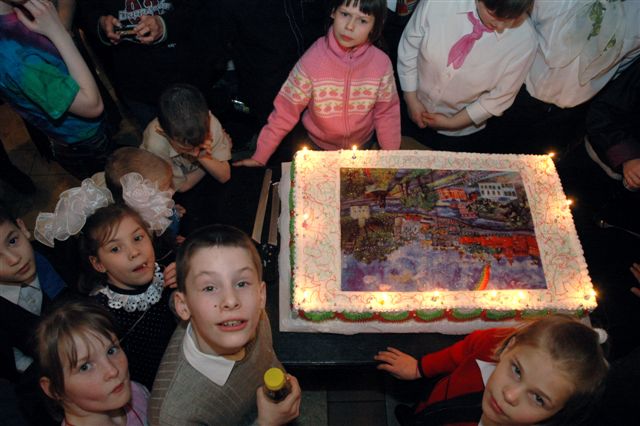 В воскресенье мы праздновали день рождения нашей студии. На празднике были дети из всех наших интернатов, много друзей и гостей. Дети показали концерт, а группа ребят из 4-го интерната — сцены из спектакля на итальянском языке, который они готовят к майской поездке в Италию. Старшие ребята пели по-испански, а завершилось все фейерверком на улице.