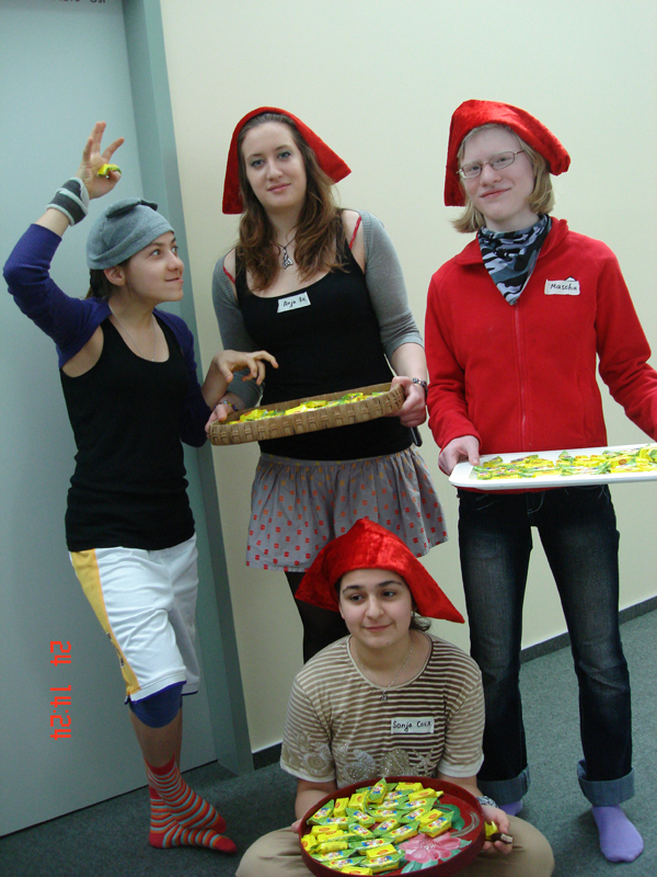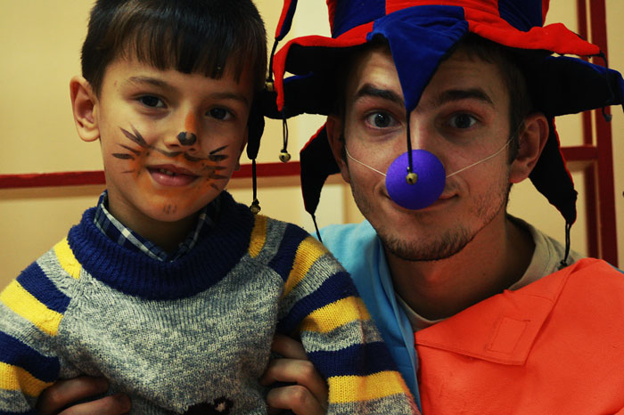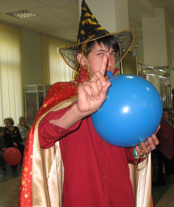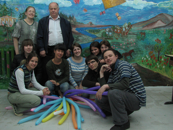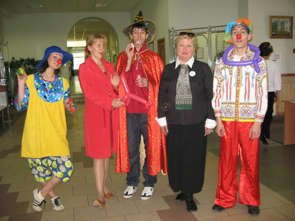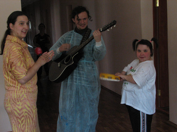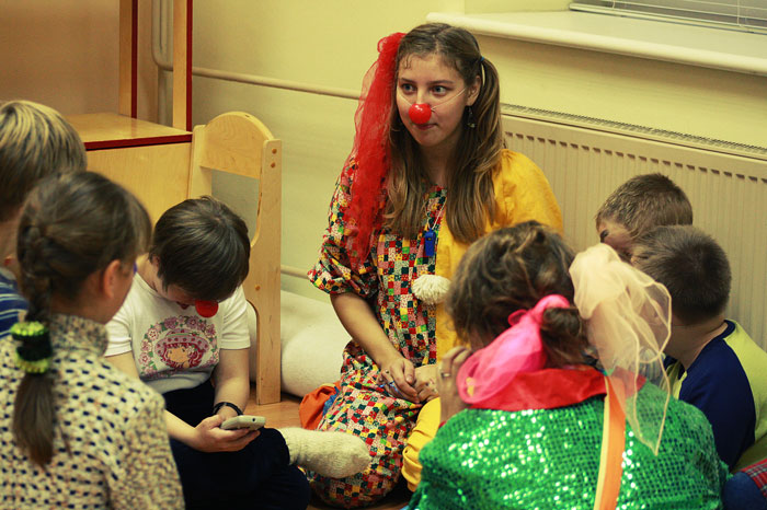 Мы часто приходим к детям в детских домах и больницах поклоунничать. Как правило, эта инициатива исходит от взрослых: людей, которые обращаются к нам в студию с просьбой помочь и порадовать детей, или мы сами идем или едем к детям, с которыми подружились. И наши взрослые организуют клоунскую поездку, в которой принимают участие старшие ребята и волонтеры. Но недавно сотрудники с радостью узнали, что наши старшие ребята и сами предпринимают такие поездки к детям. И уже не раз. Так, например, несколько старших ребят ездят в Серпухов к детям в детский дом. Побывав как-то на молодежном тренинге и познакомившись там с симпатичными студентками Московской Финансово-Юридической Академии, ребята теперь вместе с волонтерами этого ВУЗа по выходным отправляются в Серпухов, где их уже ждут дети. Волонтеры везут подарки, наши же ребята играют в наши фирменные клоунские игры и с детьми, и с воспитателями детского дома.
