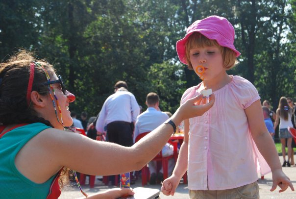 24 августа, в воскресенье, состоялся ежегодный благотворительный велопробег в пользу детей с синдромом Дауна, который проводятт наши друзья из организации Downside Up ( www.downsideup.org ). Мы принимали участие в этом празднике для детей в качестве клоунов, играя с ребятами в ожидании участников велопробега.