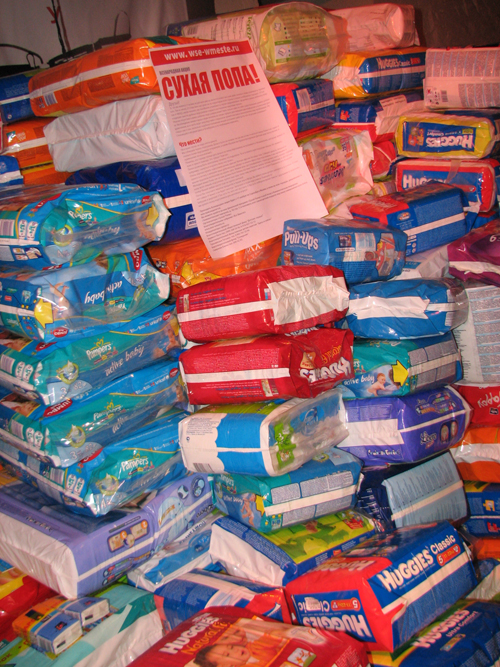 Наша студия, как всегда, активно участвовала в этой акции. За это время только в наш центр принесли около 50 пачек подгузников, а он был лишь одним из многих пунктов сбора. Их приносят люди самого разного возраста и положения: бабуши и молодые родители, бизнесмены и студенты, целые компании и семьи. Чась подгузников, собранных в АПШУ также перекочевала в нашу студию, и 5 декабря, наш микроавтобус, заполненный подгузникам, отправился в подмосковное Фрязино, где его уже ждали в Доме ребенка.