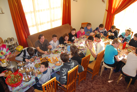 25 февраля по 4 марта прошел наш традиционный зимний отдых в Сорочанах. В лагере 19 детей из 4го интерната и недавних выпускников интерната учились кататься на сноубордах, горных лыжах и коньках. Мы рисовали большую картину, играли в театральные и настольные игры, учились готовить и мыли посуду. В "Театре с колёс" были поставлены два спектакля — "Волк и семеро козлят" и "Красная шапочка", а еще мы нарисовали и показали "живой мультфильм" "Хеломские мудрецы" по стихам Овсея Дриза.
