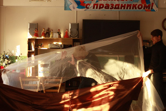 Спасибо нашим волонтерам: Надюшке, Лёше, Серёже, Мише, которые вели мастер-класс и помогали нам с погрузкой, нашей художнице Нюсе Митиной за тантамареску.