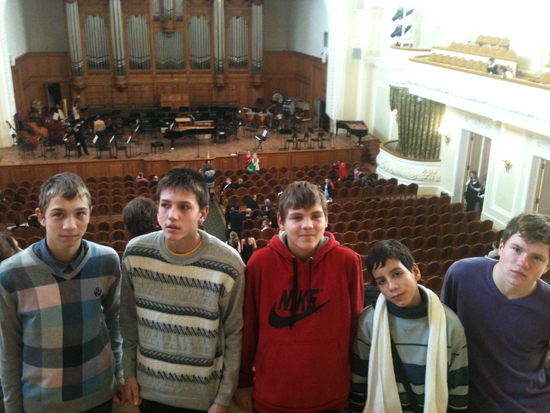 Ещё в прошлом году наши друзья из посольства Италии, Margherita Belgiojoso и Emanuele Di Lorenzo Badia, сделали детям прекрасный подарок — абонементы на цикл детских концертов в Московской консерватории на 2013-2014 год. Ребята из 7 класса школы-интерната №4 посещают эти концерты с большим удовольствием.