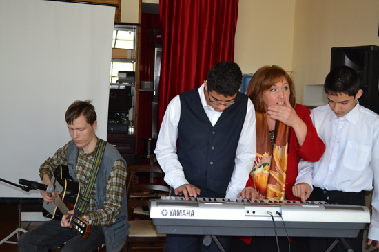 Затем ребята из разных интернатов выступили с песнями и музыкальными номерами, подготовленными под руководством нашей новой преподавательницы музыки Людмилы Савиной.