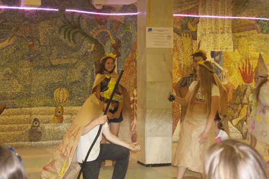 Первое выступление состоялось 18 января в ГБУ ТЦСО Орехово-Борисово Южное перед подопечными центра разных возрастов. Нас приняли очень тепло и звали в гости еще! Наша дружба с этим центром началась еще в прошлом году. А 25 января состоялся второй показ спектакля в Детском доме-интернате №7. Там живут очень хорошо и давно знакомые нам ребята, которые регулярно приезжают на занятия к нам в студию. Поэтому нашей взаимной радости от встречи не было предела! Наш спектакль был очень хорошо принят ребятами, особенно старшими. Младшим было интересно живое музыкальное сопровождение спектакля, исполняемое на разных необычных инструментах.