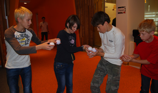 Леша - наш выпускник и волонтёр, один из ведущих мастер-класса по жонглированию.