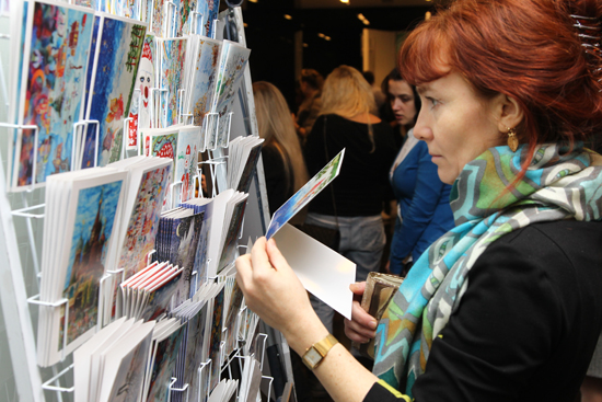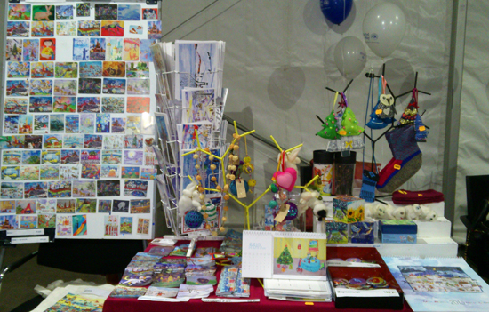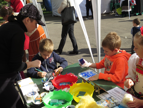 Открытки и магниты с рисунками детей пользуются неизменным успехом. Несколько наших волонтёров проводили на базаре мастер-класс по жонглированию. На нашем стенде любой желающий мог изготовить для себя значок или зеркальце как с картинами наших детей, так и со своим рисунком.