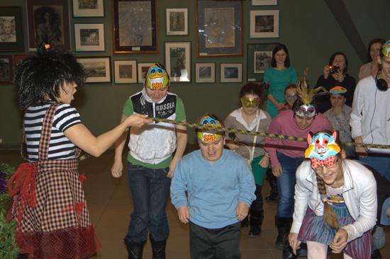Началось все с выставки «ЗИМНЯЯ СКАЗКА», где были представлены зимние пейзажи Сергея Андрияки и художников студии, а также интереснейшая выставка старинных игрушек, для ребят была проведена экскурсия. Театрализованное представление увлекло всех, дети танцевали, играли.