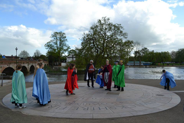 Познавательная программа в Стратфорде была у нас весьма насыщенная. Мы нанесли визит в дом самого Шекспира, а также его жене, маме и внучке с зятем. Культ Шекспира в Стратфорде очень милый и уютный, совсем не пафосный, мы приобщились к нему, пропев вместе с горожанами Happy birthday, dear William, happy birthday to you, и имениннику был поднесён большой торт с большими свечками (не знаем, кто его съел, точно не мы). И все исторические места проникнуты этим домашним отношением и любовью, насыщены историческими деталями и интерактивными возможностями, которые расширили наши представления о жизни и культуре людей того времени. Кроме одной девочки, все были в Англии и на родине Шекспира впервые. И для нас это было уникальным переживанием — почувствовать связь веков, непрерывность культурной жизни и традиций. Например, мы посидели за партами, за которыми 500 лет непрерывно учатся дети, и Школа выпускает их в мир, укрывает от чумы, провожает на поля сражений и помнит поимённо всех мальчиков, погибших на фронтах мировых войн XX века.