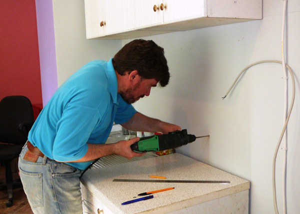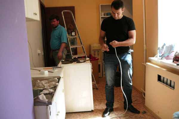 В помещении на Делегатской улице, которое мы приводим сейчас в рабочее состояние, мастера на все руки проверили электрохозяйство - установили две электророзетки, повесили пульт для керамической печи, укрепили розетку. Еще собрали столы для керамической мастерской и наметили план работ на будущее.