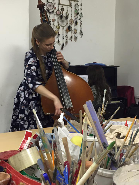 Выпускницы консерватории Даша Попрас и Настя Ларионова сегодня пришли к детям с музыкой. Даша раньше уже бывала у нас, приносила сладости к чаю. На этот раз она принесла свой инструмент — контрабас (ну, а фортепиано у нас всегда наготове:) Девушки исполняли для ребят редкие и прекрасные произведения для контрабаса: Шуберта, Глиэра, Сен-Санса. И некоторые ребята даже попрактиковались в звукоизвлечении. Было чудесно, немного непривычно и вдохновенно, спасибо Даше и Насте!