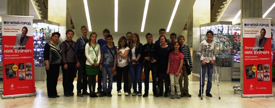 На прошлой неделе один наш добрый друг и донор подарил студии 50 билетов на выступление Ника Вуйчича. На встречу с Ником отправились наши выпускники (участники фонда «Пеликан»), старшеклассники из ЦССВ «Спутник» и 31й школы-интерната для детей с нарушениями опорно-двигательного аппарата.