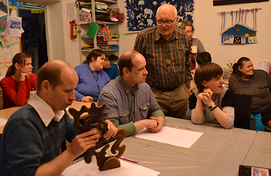 17 мая в студию пришли гости, наши старые друзья-художники из Германии, Нина Гелинг и Эккахарт Бушон, чтобы провести необычное занятие с ребятами из ПНИ № 16. Нина и Эккахарт принесли свои «вариабили» — как они сами их называют.