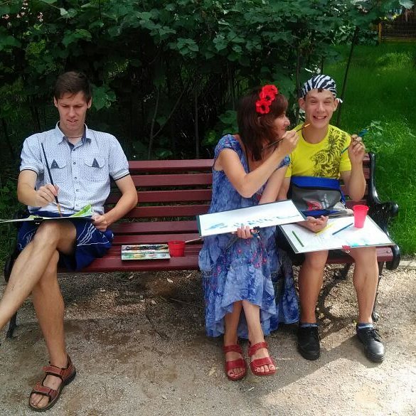 Пока многие наши дети отдыхают в лагерях, к нам стали чаще приезжать ребята из ЦССВ «Юнона», которые остались в Москве. В теплую летнюю погоду хочется больше времени проводить на улице, так что в некоторые дни мы выезжаем на пленер — порисуем, и поиграем, и устроим пикник.