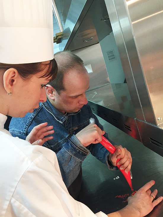 19 и 20 декабря наши ребята побывали на предновогоднем кулинарном мастер-классе в Марриотт Отеле на Новом Арбате. В понедельник — дети из ЦССВ «Спутник», во вторник — молодежь из ПНИ № 16. Ребята вырезали формочками новогоднее печенье, а пока оно пеклось, кондитер Ирина провела нам экскурсию по кондитерскому цеху ресторана, это было впечатляюще — сколько хитрых приспособлений, оказывается, используют настоящие кондитеры!