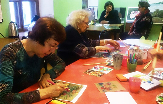 21 февраля в ЦСО Тверского района накануне Дня защитника Отечества досуговые клубы провели праздник для ветеранов труда, пенсионеров района. В уютном зале звучала музыка, песни, исполнялись танцевальные и цирковые номера. В кружковой проходили мастер-классы по изготовлению поздравительных открыток, их проводила и наша художница Анна Андреева. Она познакомила участниц с техникой монотипии — оригинальным и захватывающим способом получения изображения. Бабушки работали с увлечением, каждая сделала по несколько открыток.