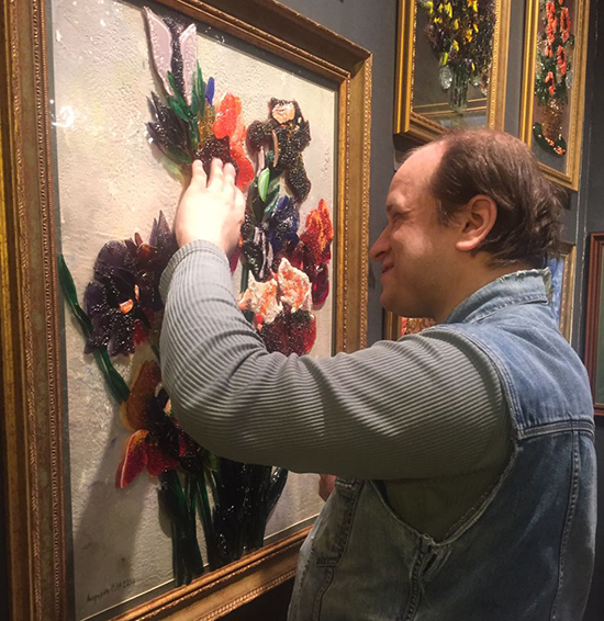 Незрячий Андрей Савельев знакомится с картинами наощупь.
