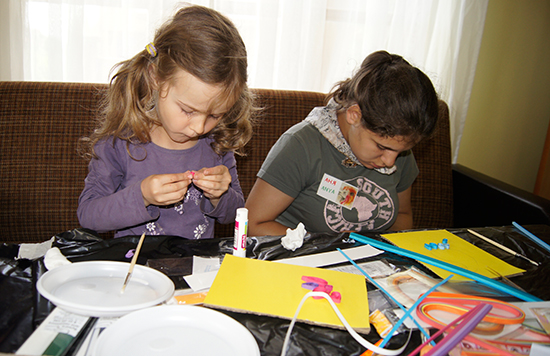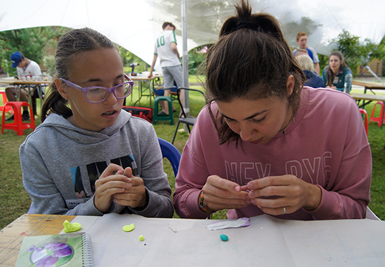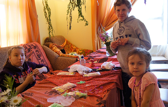 Некоторым детям захотелось не только участвовать в мастер-классах, но и самим учить чему-нибудь, Вова из Филимонок объявил и провёл мастер-классы по плетению браслетов из резиночек, а Света – по плетению косичек.