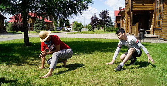 Волонтёр из Мексики Фано учил нас элементам капоэйры и ритму.