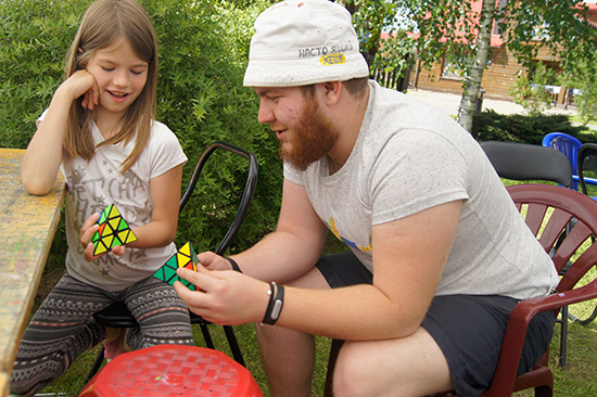 Волонтёр из Беслана Хетаг учил собирать головоломки – кубик Рубика, пирамидку, и быстро прижилось название мастер-класса «Пирамида Хетага».