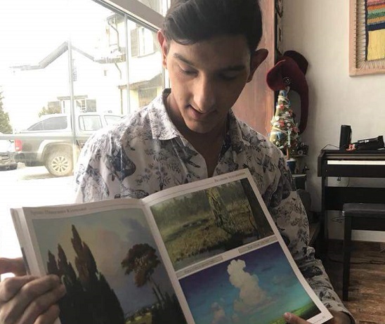 Целый месяц Костя Тумашевич из Филимонковского детского дома готовил лекцию про мастера пейзажной живописи Архипа Ивановича Куинджи. Мария Елисеева рассказала ему об этом русском художнике и заметила, что работы Кости, чем-то напоминают стиль великого живописца.