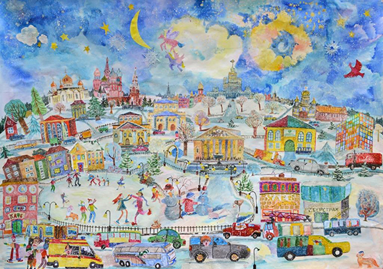 Жюри III международного Фестиваля-конкурса изобразительного искусства «Дадим шар земной детям» присудило Дипломы лауреатов 1 и 2 степени работам наших ребят «Каток на Красной площади» (коллективное валяное панно) и «Зимний вечер в Москве» (коллективная картина).
