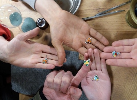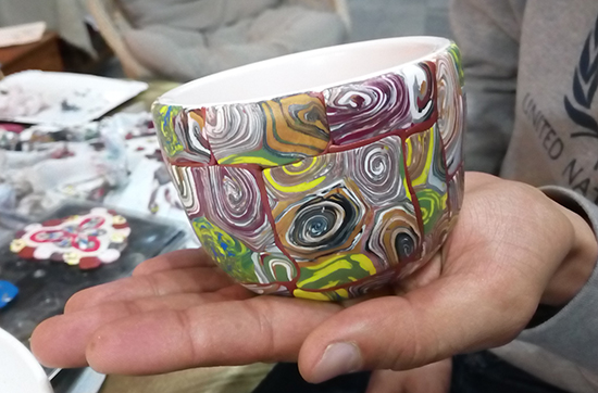 За несколько дней наши преподаватели и волонтёры попробовали себя в изготовлении украшений из полимерной глины и декорировании керамики полимеркой, сотворенни шёлковых цветов и арт-объектов из камня, заливке композиций эпоксидной смолой и монотипии.